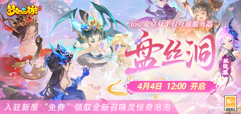 梦幻西游手游2025年4月份开服公告,梦幻手游在4月4日中午12点开放安卓/ios新服务器【盘丝洞】,邀请玩家准时进驻,更多精彩活动请关注游戏内公告!