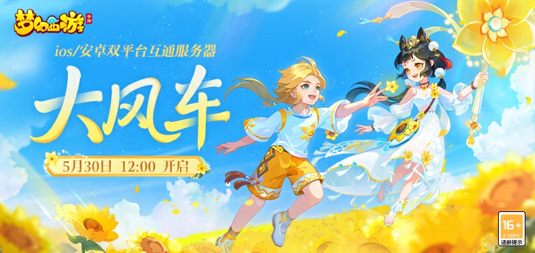 梦幻西游手游2025年5月份开服公告,梦幻手游在5月30日中午12点开放安卓/ios新服务器【大风车】,邀请玩家准时进驻,更多精彩活动请关注游戏内公告!